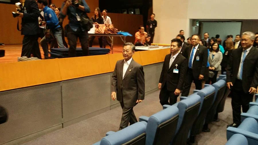 (ชวน หลีกภัย ดูการเคลื่อนย้ายอุปกรณ์จากห้องประชุมชั่วคราวทีโอที)