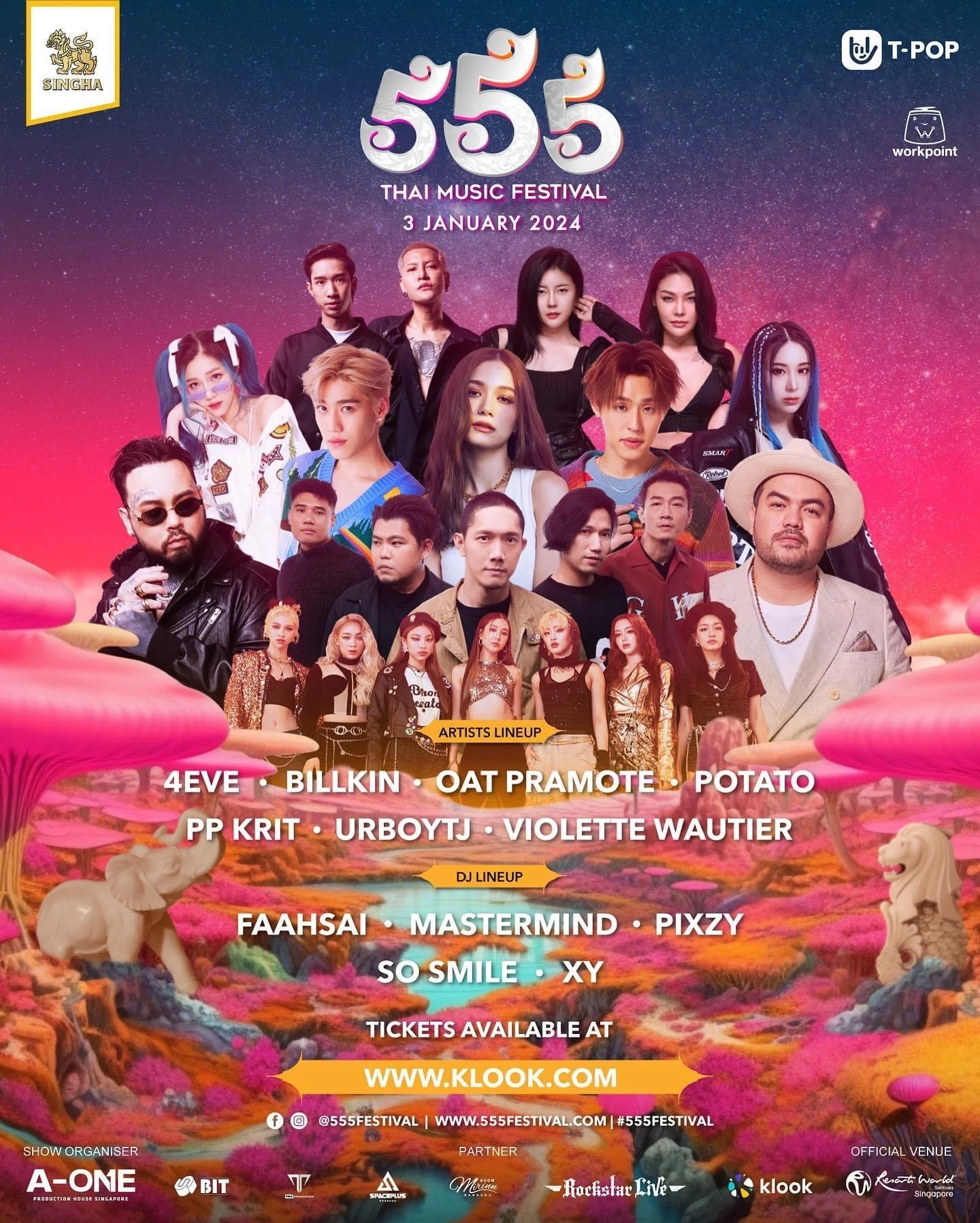 และอีกหนึ่งงานกับ ‘555 THAI MUSIC FESTIVAL’ งานเทศกาลดนตรีไทยที่จะจัดขึ้นที่ สิงคโปร์ ในวันที่ 3 ม.ค. 2567 ที่มากับทัพศิลปินไทยพร้อมโชว์แบบจัดเต็ม ให้แฟน ๆ สิงคโปร์ ได้สัมผัสกับบรรยากาศเพลงไทยตั้งแต่ต้นปี 2567 รวมไปถึง Soft Power อื่น ๆ ทั้ง อาหาร เครื่องดื่ม และวัฒนธรรมไทยอีกมากมาย