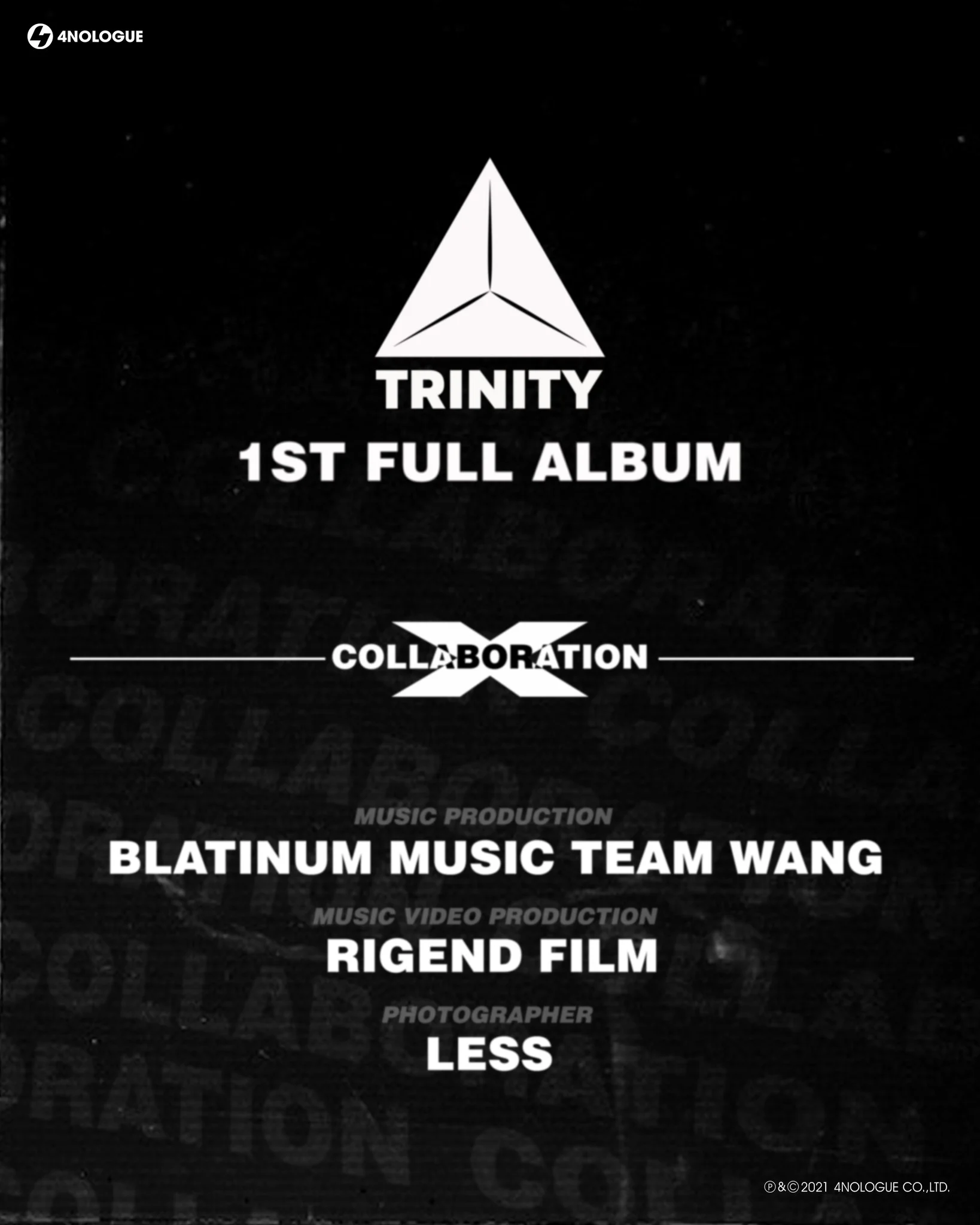 หลังทางวงประกาศอย่างเป็นทางการ พร้อมข้อความ TRINITY IS BACK งานนี้แฟนๆ ถึงกับรอติดตามเลยว่าเพลงจะออกมาเป็นยังไง เริ่มที่ Music Production By BLATINUM MUSIC TEAM WANG ชื่อนี้แฟนๆ ถึงกับอุทานว่า ‘ว้าว ว้าว ว้าว’ กับการคอลแลปในครั้งนี้ ไม่เพียงเท่านั้น ยังมีทีมมิวสิควิดีโอโปรดักชั่นโดย ‘RIGEND FILM’ ผู้อยู่เบื้องหลังเอ็มวีมากมาย อาทิ MV เพลง Superhuman- NCT 127, Regular – WayV, Alcohol-Free – TWICE เป็นต้น เอาเป็นว่า ธันวาคมนี้ รอติดตาม 1ST FULL ALBUM ของพวกเขาไว้ได้เลย