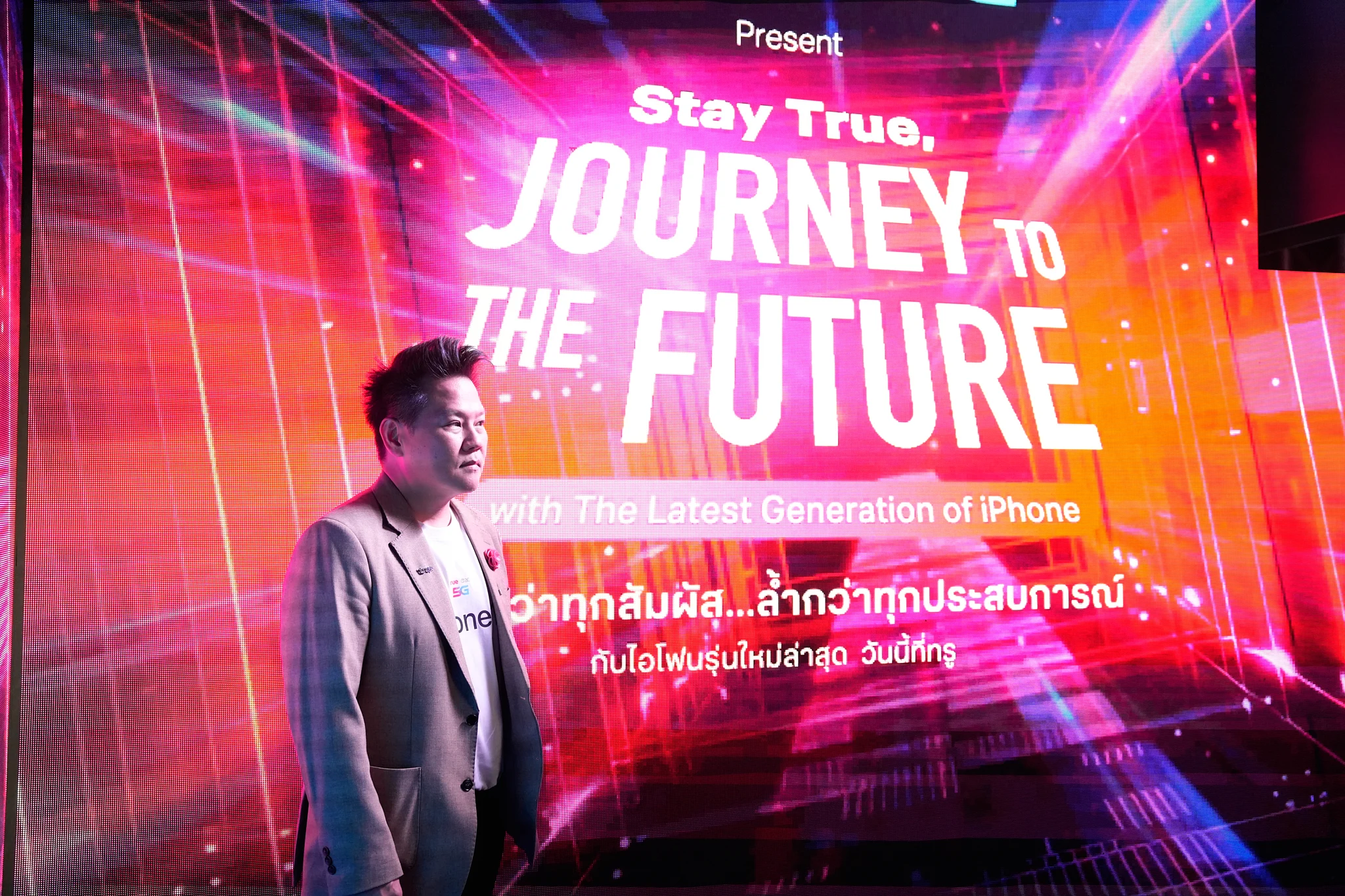 ยกตัวอย่างในช่วงโควิดที่ไม่สามารถจัดอีเวนท์ได้ สิ่งที่เราคิดค้นขึ้นมาคือ True Drive Thru ที่ลูกค้าไม่ต้องลงจากรถก็สามารถรับ iPhone ได้ หรือในปีถัดมา เราก็ยกระดับประสบการณ์ขึ้นไปอีกขั้นด้วยการปิดโรงแรม และใช้โดรนบินส่ง iPhone ไปถึงหน้าห้องลูกค้า สิ่งเหล่านี้คือการใส่ใจในรายละเอียด ที่เรามองว่านวัตกรรมที่ดี ต้องทำให้ผู้คนรู้สึกมีความสุข และทำให้ตลาดเต็มไปด้วยสีสัน สำหรับเรา iPhone Event ไม่ได้เป็นเพียงเรื่องของการขาย iPhone เท่านั้น แต่คือการสร้างภาพจำที่มีความหมายและน่าประทับใจให้กับลูกค้าในทุก ๆ ปี