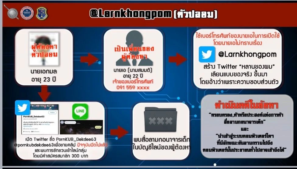 วันที่ 19 ก.พ. ตำรวจชุดปราบปรามการล่วงละเมิดทางเพศเด็กทางอินเตอร์เน็ต หรือ TICAC แถลงข่าวจับกุม เจ้าของทวิตเตอร์ หลานของผม ที่ทวีตข้อความพร้อมคลิปวีดิโอลักษณะแอบถ่ายหลานตัวเอง และโพสต์ข้อความทำนองว่าจะล่วงละเมิดทางเพศ จนกลายเป็นกระแส