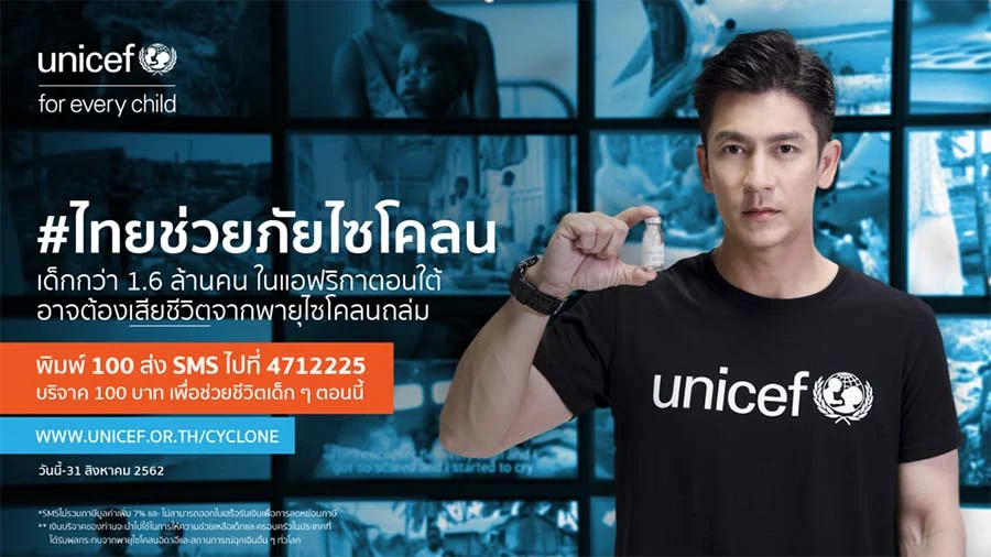 ยูนิเซฟเปิดตัว #ไทยช่วยภัยไซโคลน ระดมทุนช่วยเหลือเด็กที่ประสบภัยจากพายุไซโคลนในแอฟริกา จับมือ ติ๊ก เจษฎาภรณ์ ร่วมลงพื้นที่โมซัมบิก เพื่อถ่ายทอดเรื่องราวสู่สาธารณะ