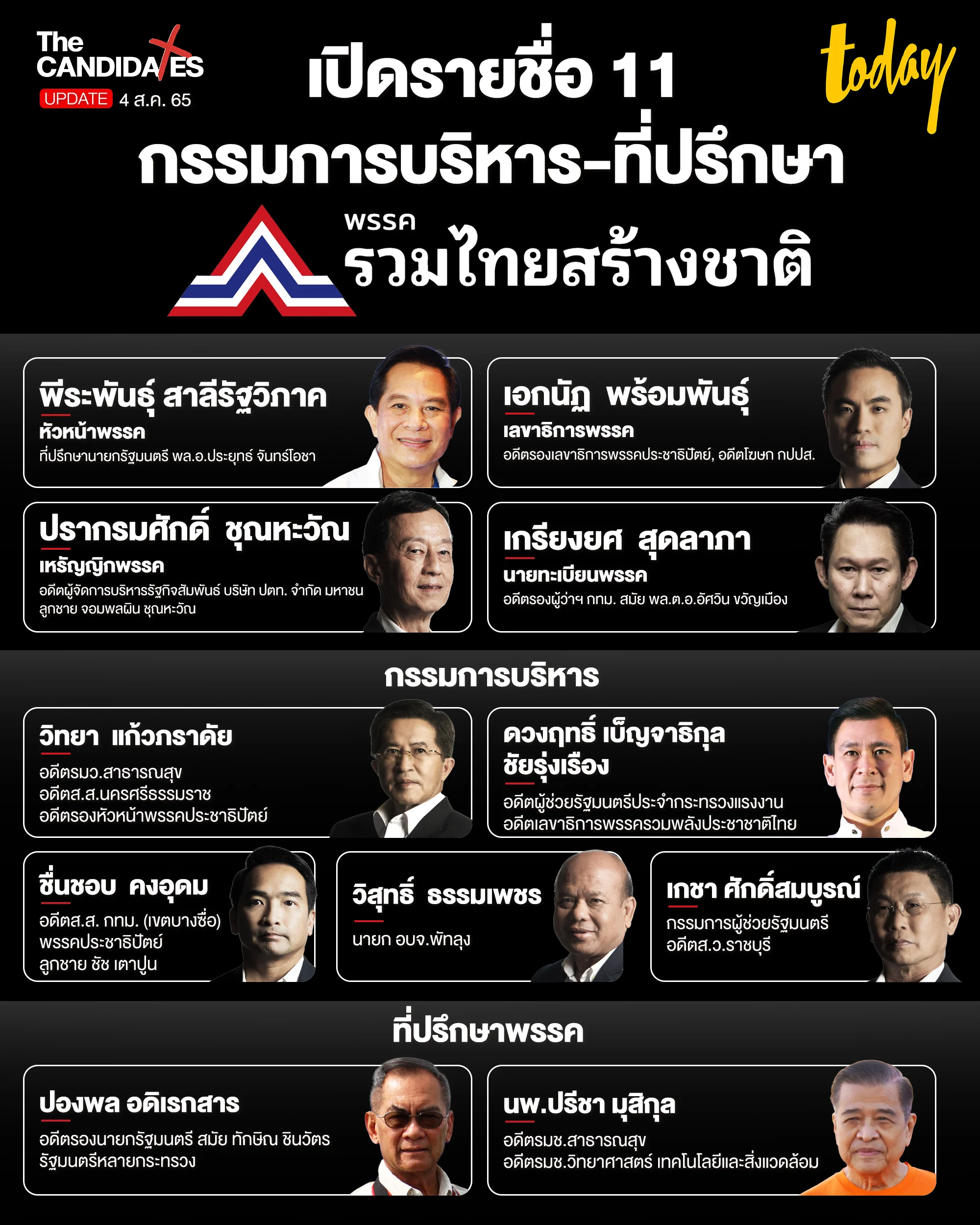 เปิดรายชื่อ 11 กรรมการบริหาร-ที่ปรึกษา ‘พรรครวมไทยสร้างชาติ’
