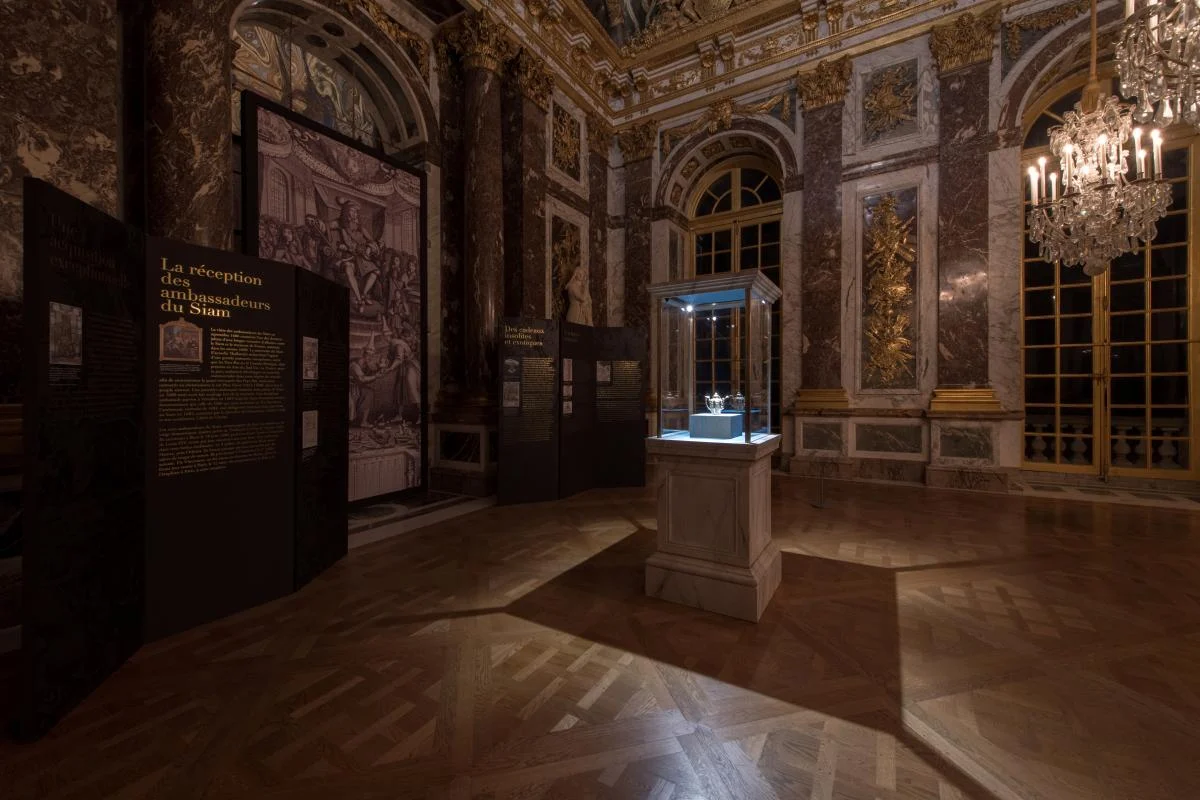 พระราชวังแวร์ซายส์จัดแสดง กาน้ำเงิน ที่คณะทูตสยามของออกญาโกษาปานนำมาถวายพระเจ้าหลุยส์ที่ 14 ที่ห้องกระจกอันโด่งดังของพระราชวังโดยเป็นส่วนหนึ่งในนิทรรศการจัดแสดงวัตถุโบราณที่มีความสำคัญในประวัติศาสตร์ ศิลปกรรม และวิทยาศาสตร์ ซึ่งได้รับความสนับสนุนจากเครือบริษัทหลุยส์วิตตอง