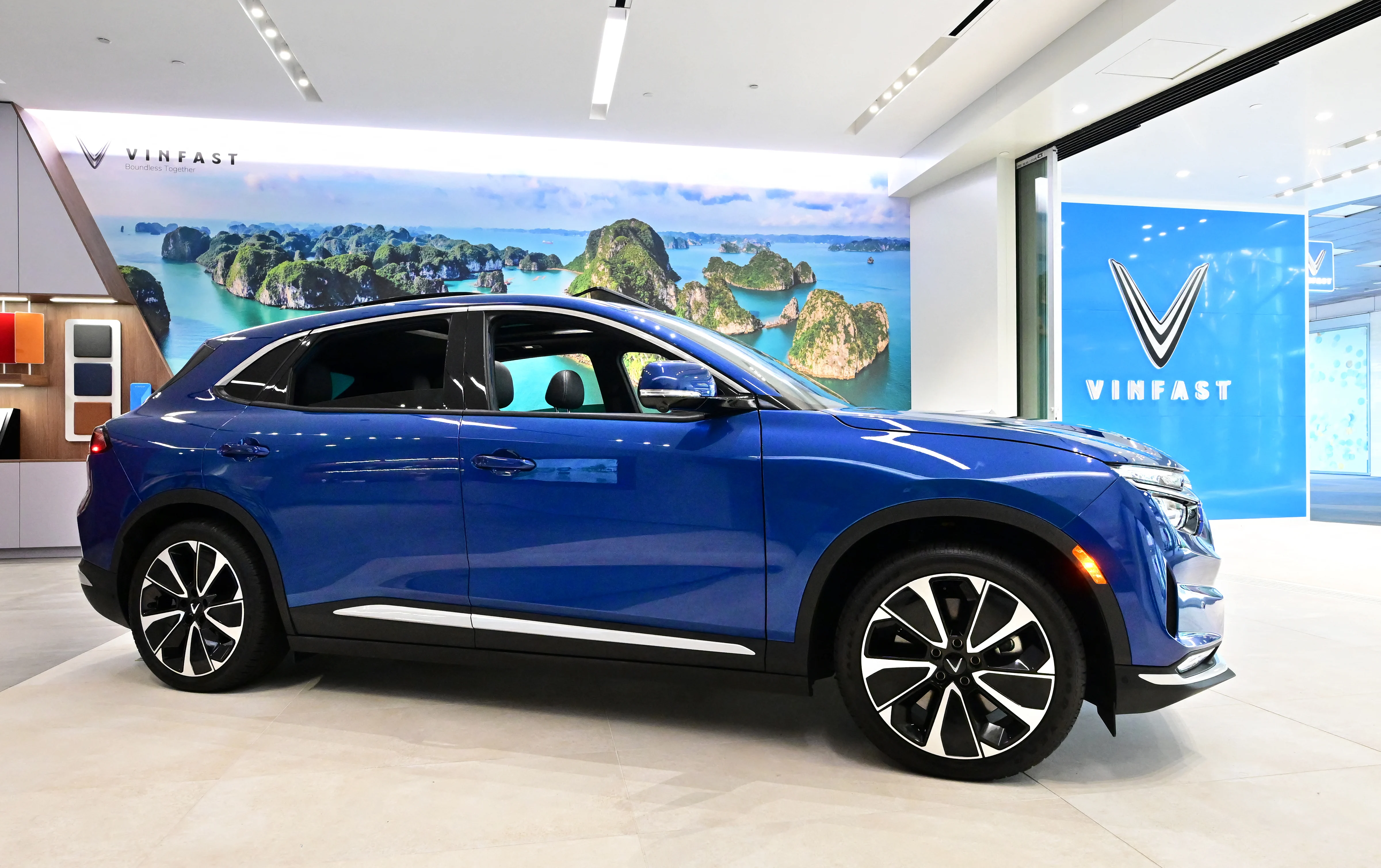 The VF-8 electric vehicle from VinFast, a Vietnamese automaker producing electric cars and SUV’s, is on display at their showroom in Santa Monica, California, on July 18, 2022. – VinFast opened six California showrooms last week, including a new dealership in Santa Monica, with showrooms in San Diego, San Mateo, Berkeley, and Corte Madera as well a groundbreaking for their first North American factory that will be held later this year in North Carolina. (Photo by Frederic J. BROWN / AFP)