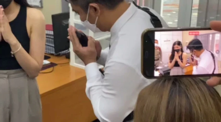 (คู่กรณียกมือไหว้ขอโทษ น.ส.แพรพลอย บน สน.ห้วยขวาง)