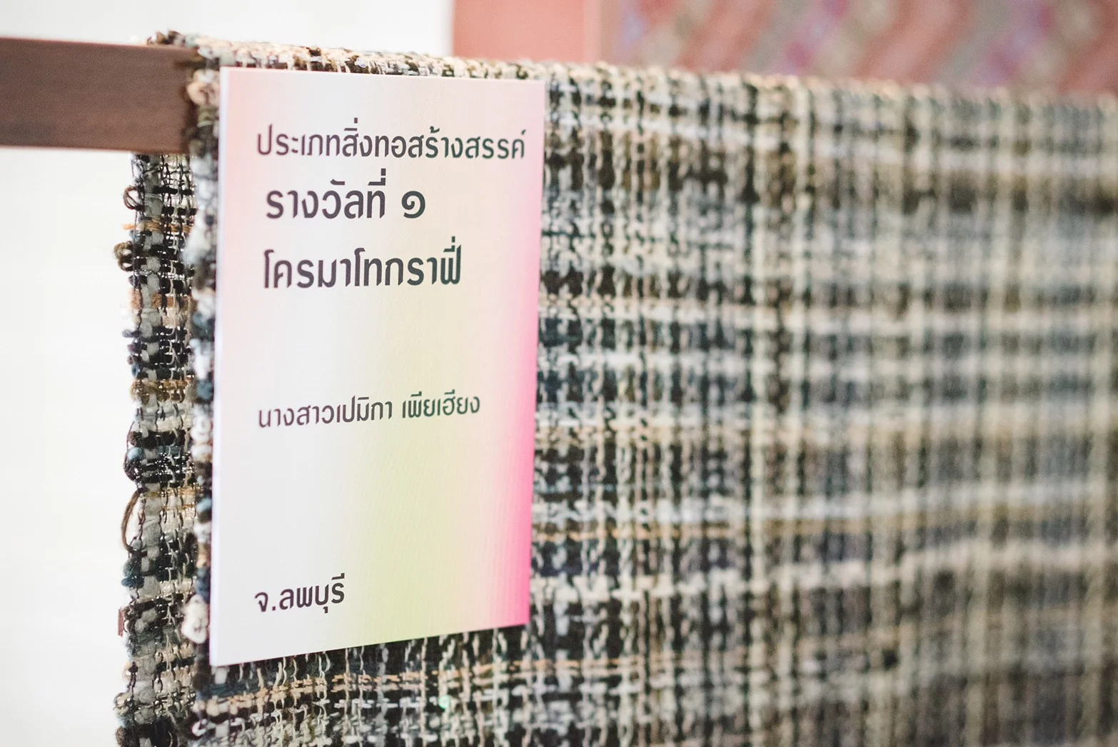 เจ้าของรางวัลชนะเลิศผ้าทอลายผ้าไทย เล่าว่า ตอนแรกอยากเรียนสาขาแฟชั่น อยากออกแบบเสื้อผ้า แต่ตอนปี 1 มหาวิทาลัยธรรมศาสตร์จะสอนพื้นฐานทั้งแฟชั่นและสิ่งทอ เมื่อได้เรียนแล้วก็รู้สึกสนุกไปกับการผลิตเส้นใย ผลิตผ้า รู้สึกสนุกมากกว่าแพทเทิร์น หรือแฟชั่น
