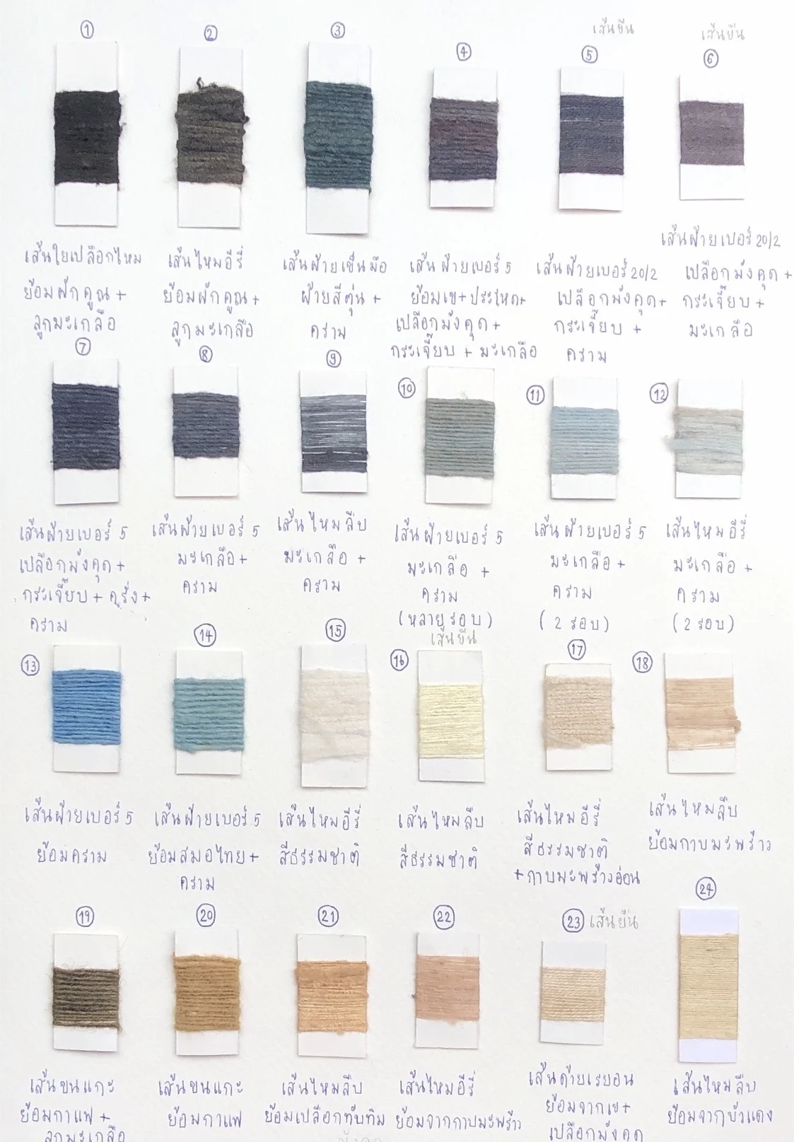 นี่เป็นแนวคิดตั้งต้นในการย้อมเส้นใยให้เป็นสีดำจากธรรมชาติ จากนั้นได้มีการนำสีจากธรรมชาติเข้ามาประยุกต์ เป็นการใช้หลักองค์ประกอบสีเข้ามาในการทำงาน ทำให้ผ้าทอ ‘โครมาโทกราฟี’ มีการผสมสีประมาณ 33 เฉดสี อาทิ สีน้ำตาลออกชมพูที่ได้จากกากมะพร้าว สีแดงที่ได้จากครั่ง สีน้ำเงินที่ได้จากคราม สีน้ำตาลเข้มที่ได้จากฝักคูณ สีน้ำตาลเหลืองที่ได้จากผงกาแฟ สีเหลืองที่ได้จากประโหด สีเหลืองที่ได้จากเข สีน้ำตาลประกายทองที่ได้จากเปลือกมังคุดแห้ง ฯลฯ
