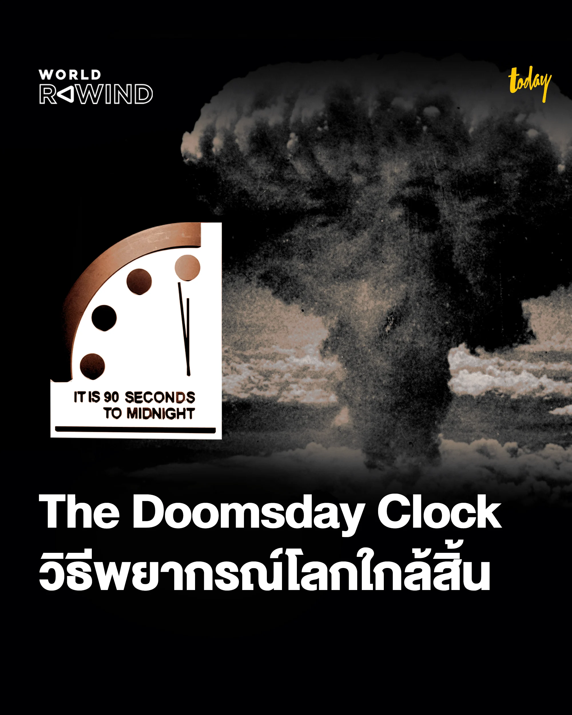 การประเมินวันสิ้นโลกผ่าน The Doomsday Clock สะท้อนสถานการณ์ความมั่นคงโลกอย่างไร ฟังสรุปเรื่องราวแบบเต็ม ๆ ได้ทางรายการ WORLD REWIND จากสำนักข่าว TODAY
