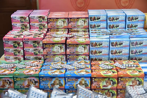 นอกจากนี้ยังพบการโฆษณาขายยาสัตว์อีกหลายรายการ ทั้งที่มีทะเบียนตำรับยาและไม่มีทะเบียนตำรับ จึงได้ขอหมายเข้าตรวจค้น บ้านเลขที่ 112 หมู่ที่ 21 ต.ห้วยขวาง อ.กำแพงแสน จ.นครปฐม