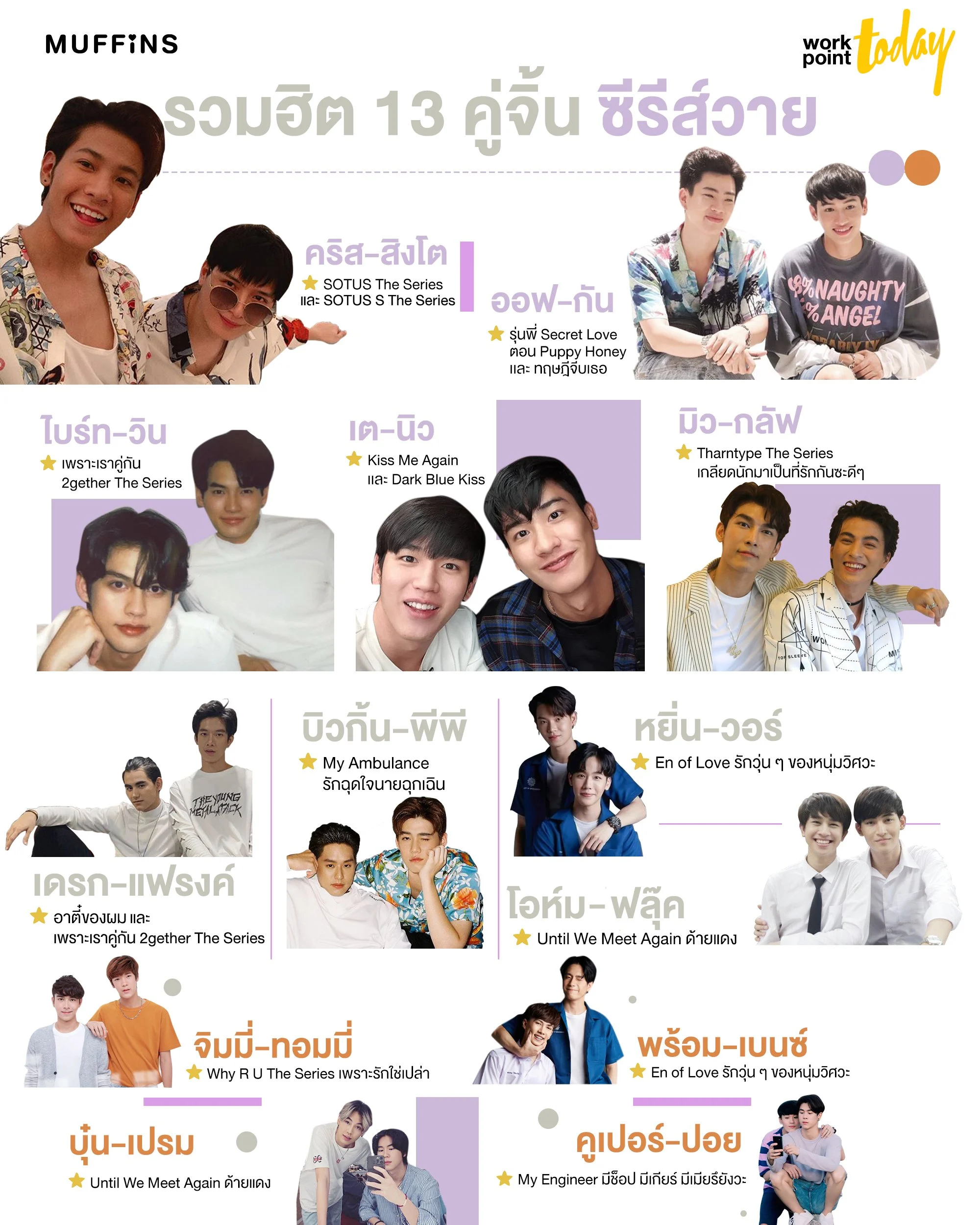 นอกจากทั้ง 13 คู่ที่กล่าวมาเเล้วนั้น ยังมีอีกหลายคู่ที่เป็นกระแสอยู่อีกมากมาย นี่เป็นส่วนหนึ่งที่ซีรีส์วายในไทยกำลังเป็นที่ยอมรับทั้งในประเทศไทย เอเชีย เเละทั่วโลก