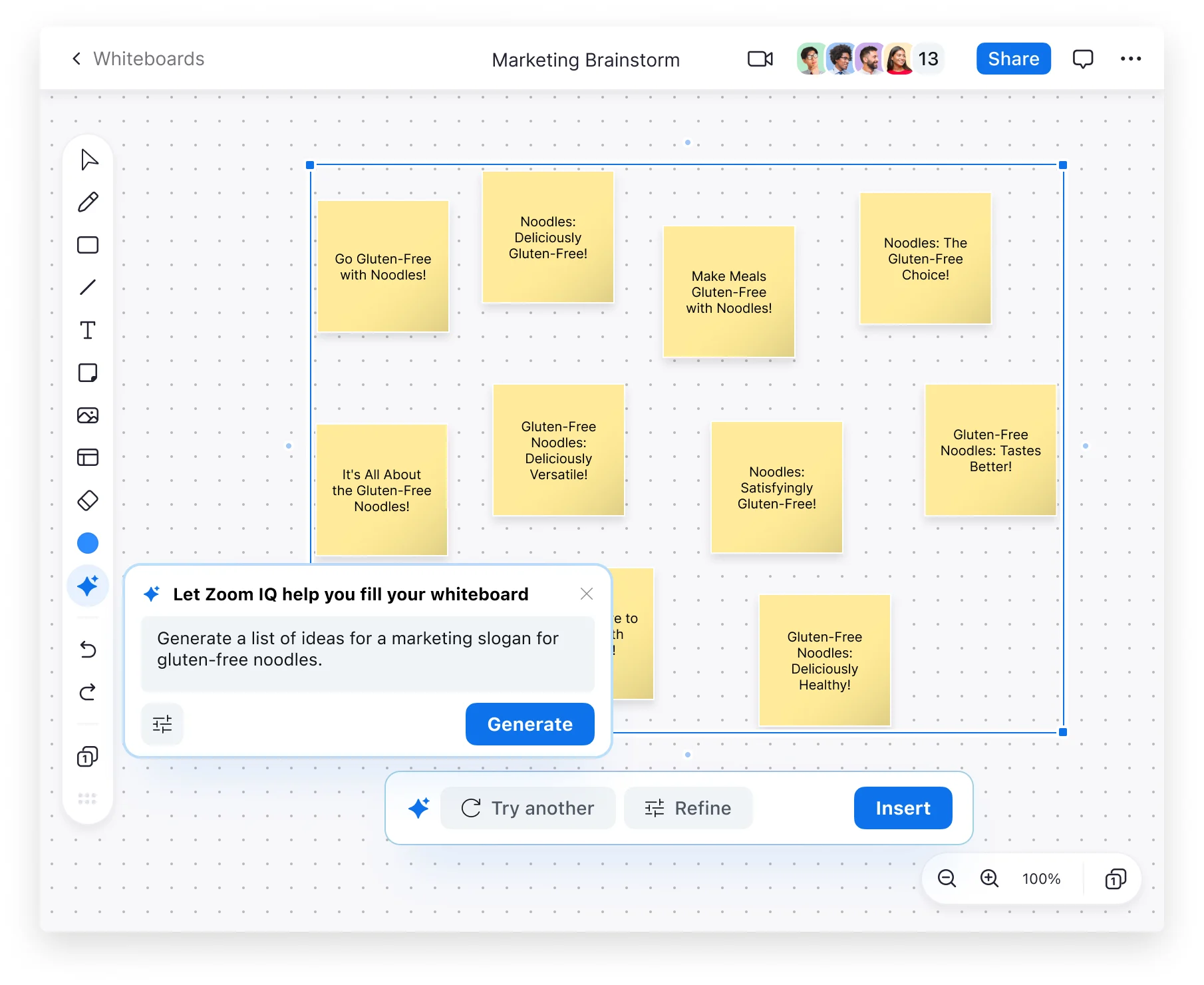 ฟีเจอร์ที่น่าสนใจคือ ให้ Zoom IQ ช่วยดราฟท์ไอเดีย เวลาต้องออกไอเดียร่วมกันผ่านกระดานไวท์บอร์ดดิจิทัล ไปจนถึงสรุปการสนทนาผ่านแชทที่ยืดยาว ปรับแต่งความยาวและโทนได้ว่าอยากให้ระบบสรุปการประชุมแบบไหน เช่นความยาวปานกลาง โทนไม่เป็นทางการ เข้าใจง่าย